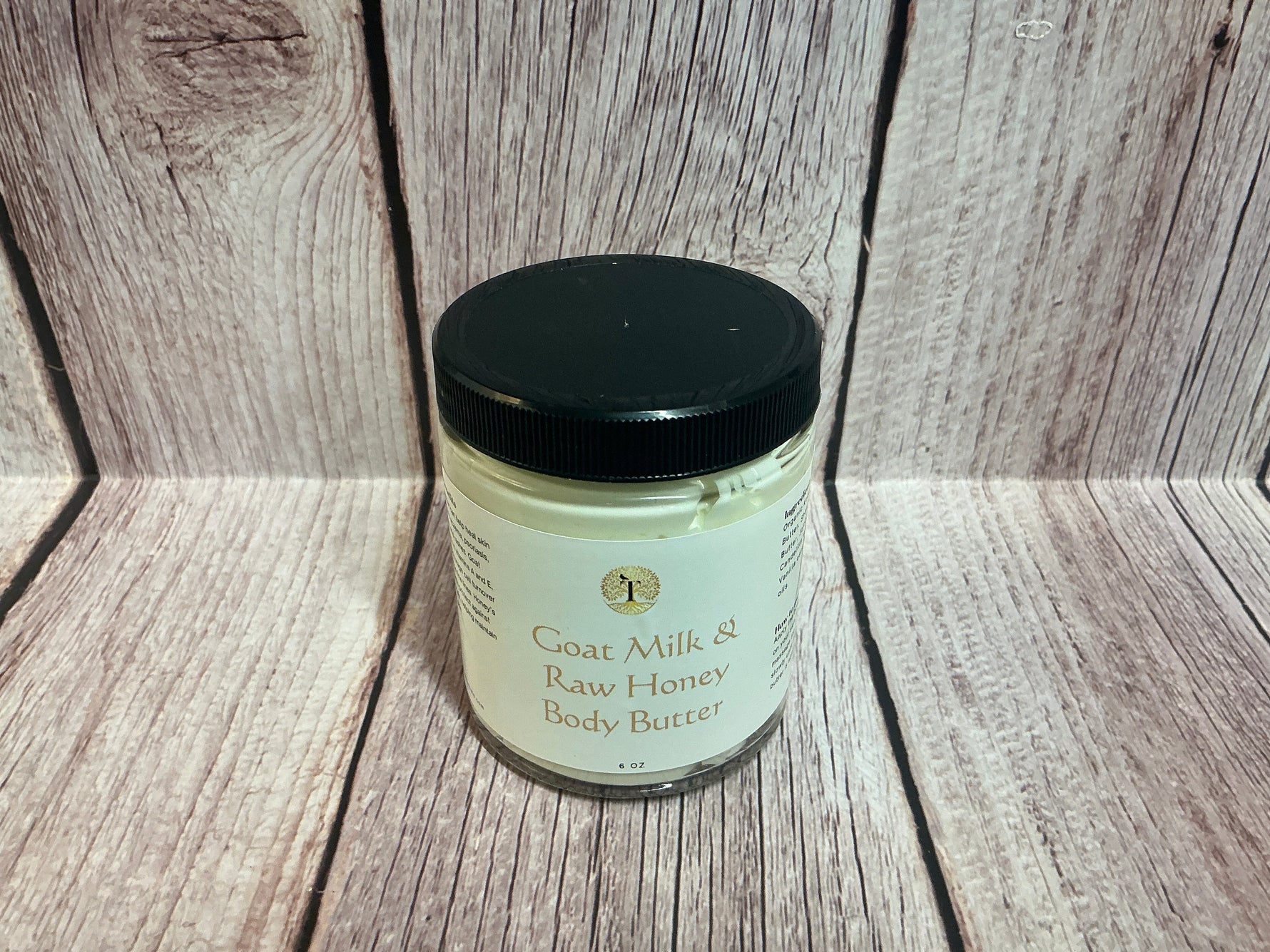 This luxurious body butter combines nourishing goat milk with the natural humectant properties of raw honey, creating a deeply moisturizing treatment for your skin. Crafted in small batches, the formula features kokum and shea butters for intensive hydration, while jojoba oil delivers essential fatty acids. Candelilla wax provides a smooth, protective barrier, and pure vanilla essential oil adds a subtle, warm fragrance to this indulgent skincare experience.Â